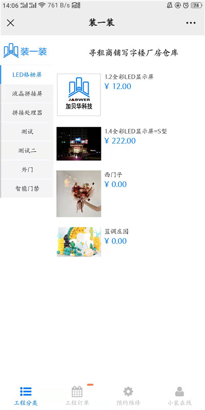功能:公众号 产品展示 预约 留言 下单 工单管理