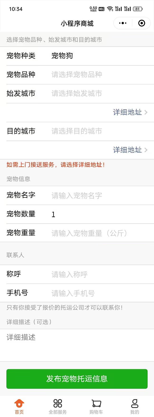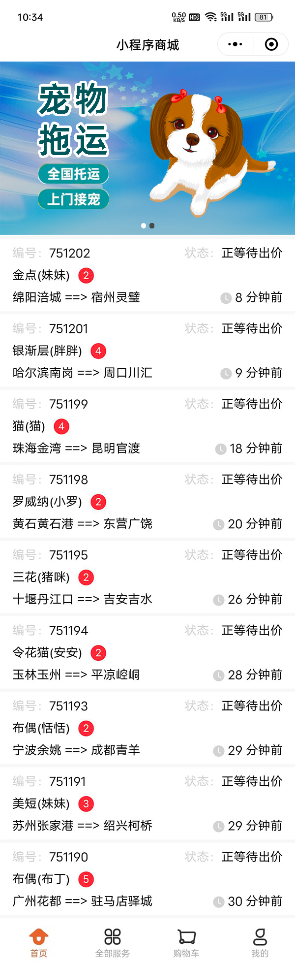 宠物托运小程序E87